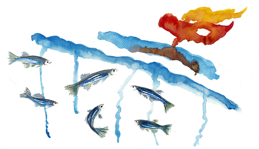 Imagem em anexo - Suporte social em peixe-zebra. Ilustração: Rodrigo Abril de Abreu