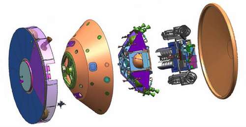 Mas não se preocupe que o módulo com a nave espacial que encaminhará o robô Curiosity, devidamente esterilizado de vida à base de carbono, será ejectado no momento exacto e na trajectória devida para que poise com a suavidade de uma pena libertadora na superfície marciana da Cratera Gale.