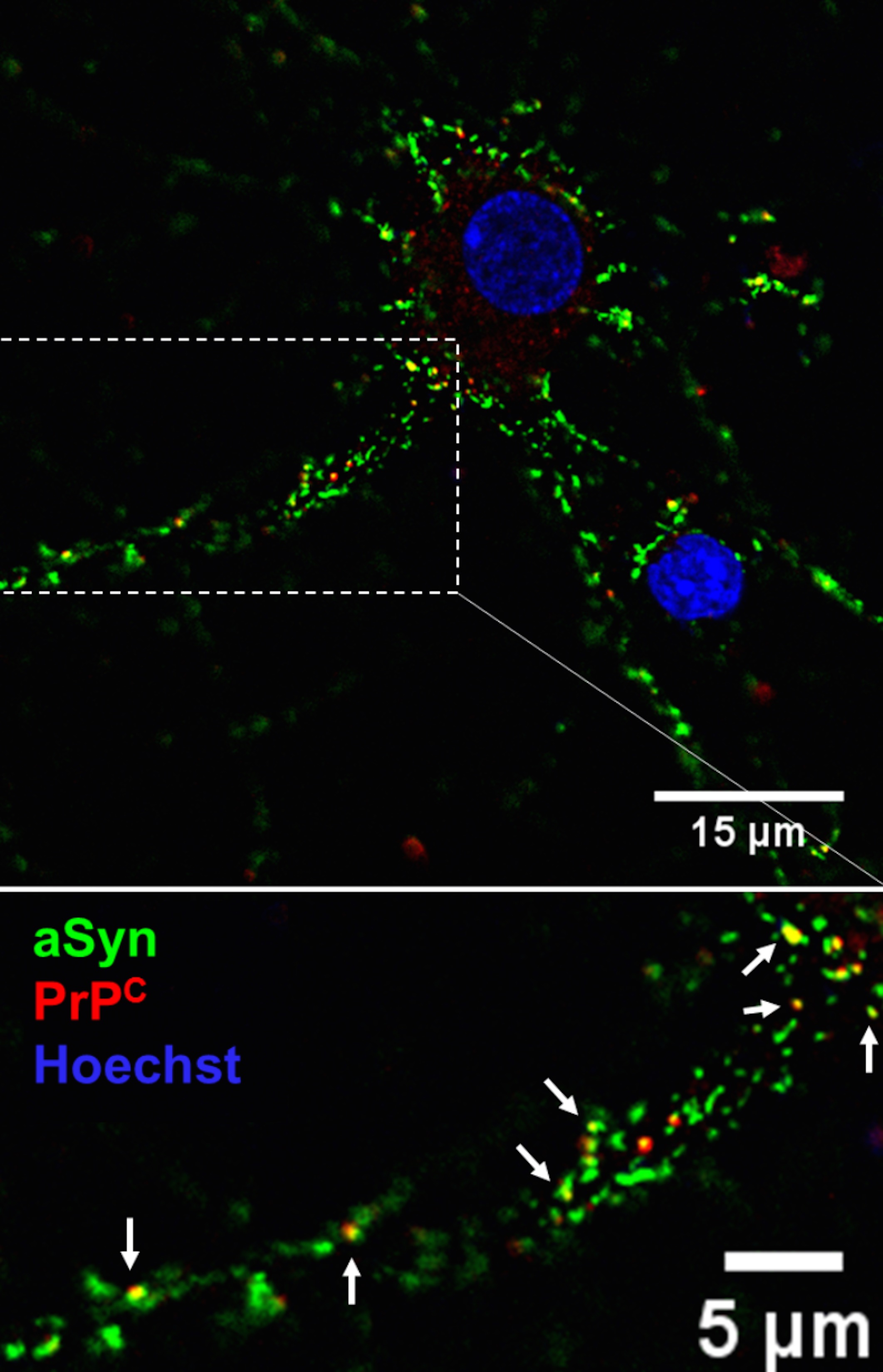 Os cientistas começaram por caracterizar as alterações que a alfa-sinucleína induz na atividade dos neurónios utilizando duas estratégias distintas: uma farmacológica, recorrendo a anticorpos para bloquear a proteína PrP, e outra genética, utilizando animais que não produzem a proteína PrP. Ambas as estratégias anularam os efeitos da alfa-sinucleína, provando assim que estas duas proteínas atuam em conjunto.