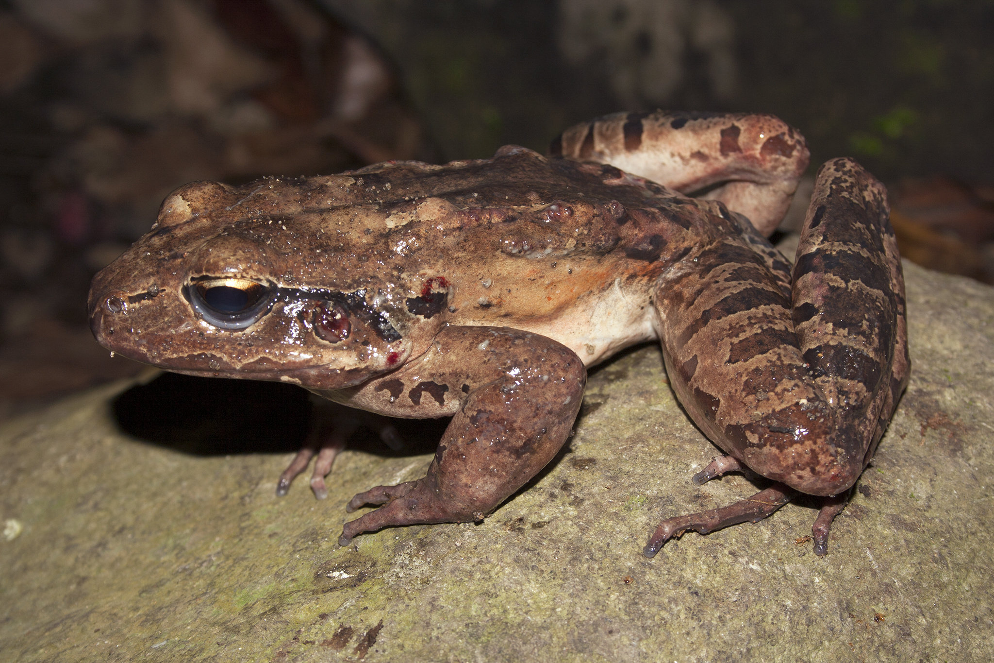 Legenda da figura anexa: Indivíduo de galinha-da-montanha (Leptodactylus fallax) com quitridiomicose na ilha de Montserrat, onde a populações foi empurrada para a beira da extinção © Gonçalo M. Rosa