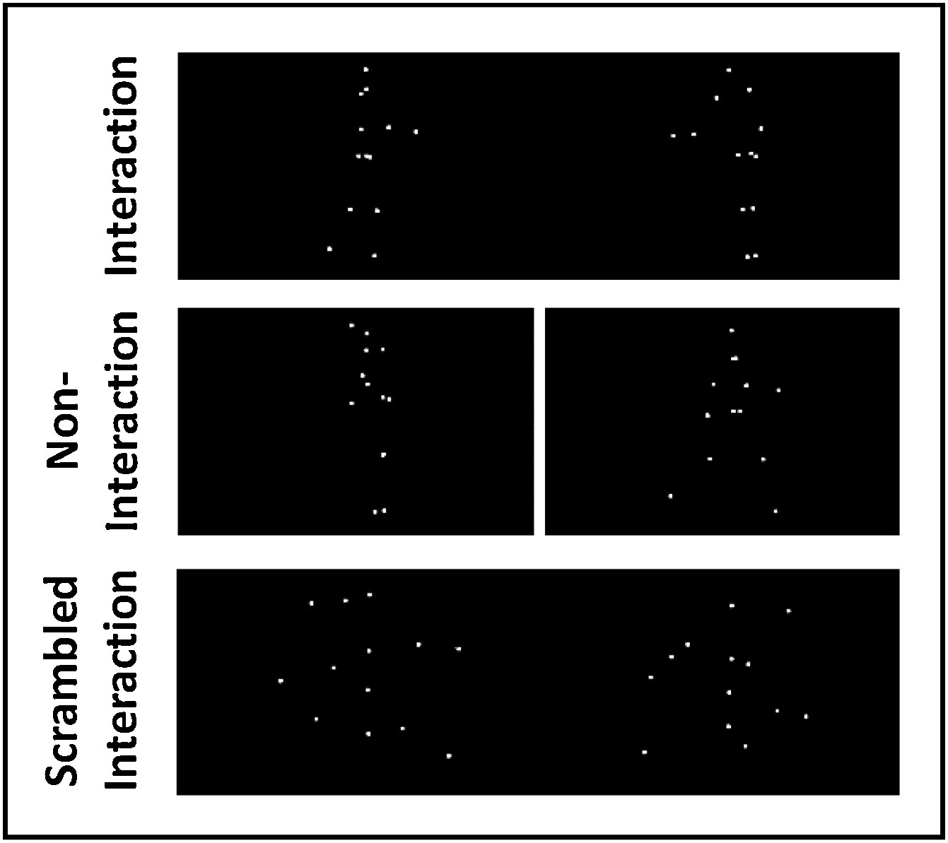 Este estudo pretendeu ver quão responsivo é o STS a interações sociais. Para isso os participantes visualizaram imagens de padrões constituídos por pontos enquanto estavam dentro da ressonância magnética. Um dos estímulos consistiu na interação entre duas figuras humanas e no outro as figuras não interagiam entre si. A seletividade do STS para interações sociais foi medida pela diferença de respostas entre o primeiro e o segundo estímulo, ou seja, quanto é que o STS respondia em específico para as interações sociais.