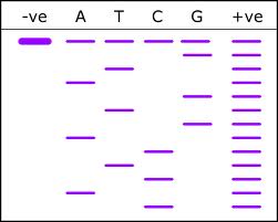 A informação será revelada recorrendo à eletroforese, um método de separação de moléculas ou fragmentos com carga elétrica, (o ADN apresenta cargas elétricas negativas devidas aos grupos fosfato) de modo a obter fragmentos que diferem por uma base azotada.