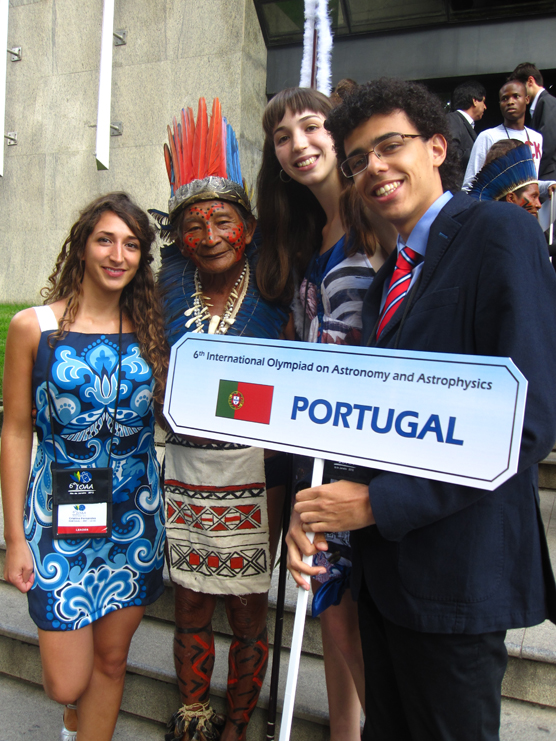 - Cristina Fernandes, Mariana Paiva e Matheus Marreiros na Cerimónia de Abertura das IOAA 2012, no Planetário do Rio de Janeiro (Brasil)