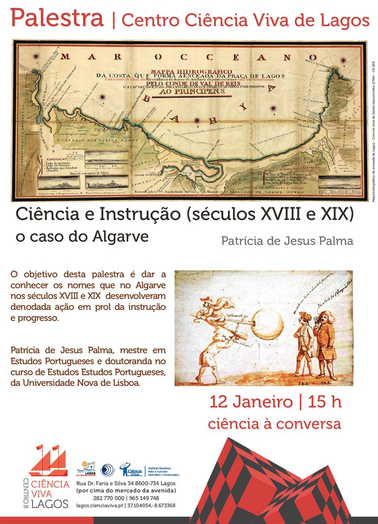 No próximo sábado dia 12 de Janeiro vai realizar-se no Centro Ciência Viva de Lagos a palestra sobre a Ciência e a Educação no Algarve dos séculos XVIII e XIX.