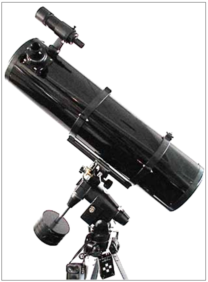 - FOTO - Telescópio reflector de Newton, em montagem equatorial alemã sobre tripé. (JPEG, 104 KB)