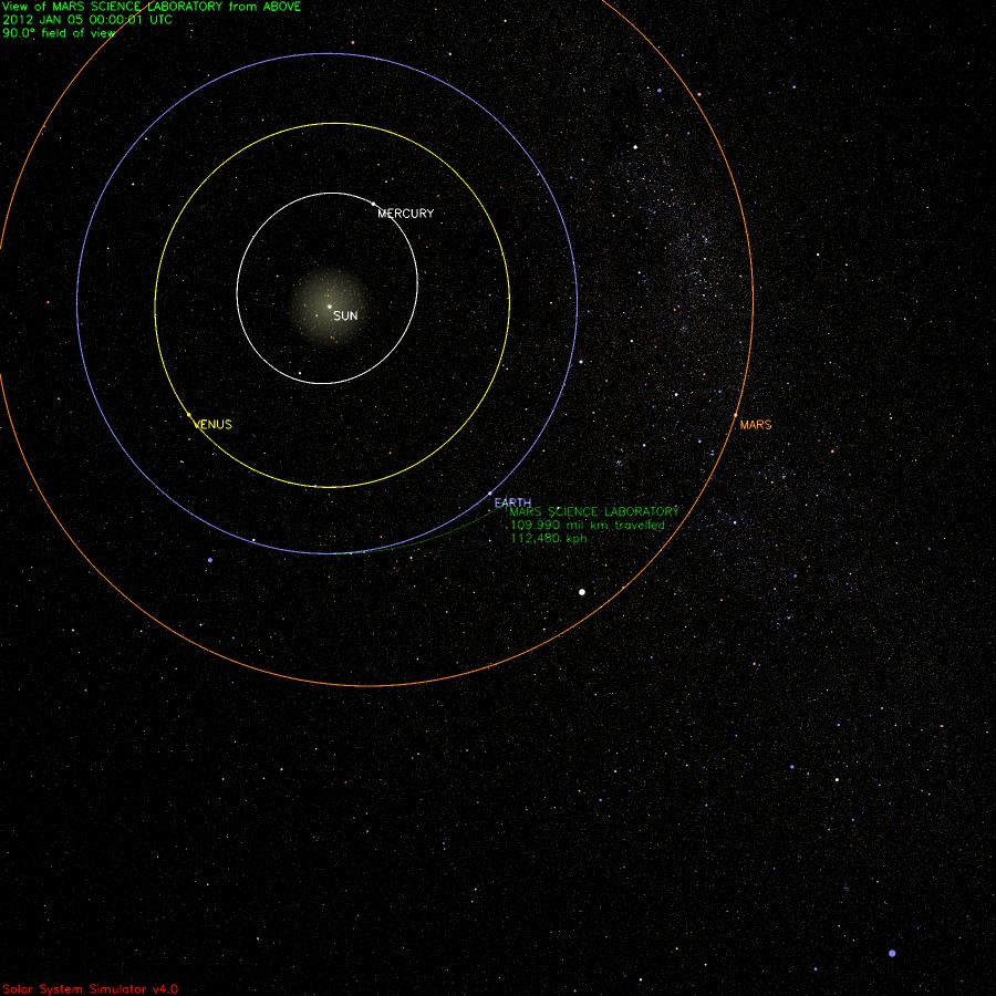 A nave Centauro já percorreu 110 milhões da sua trajectória de 567 milhões de km até se separar do módulo estéril em que "Curiosity" está envolto. Este robô todo-o-terreno e dotado com a mais sofisticada tecnologia analítica alguma vez enviada para o espaço pelo engenho humano, há-de poisar no solo da Cratera Gale na superfície de Marte, a 6 de Agosto de 2012, data prevista para a sua “marteagem”.