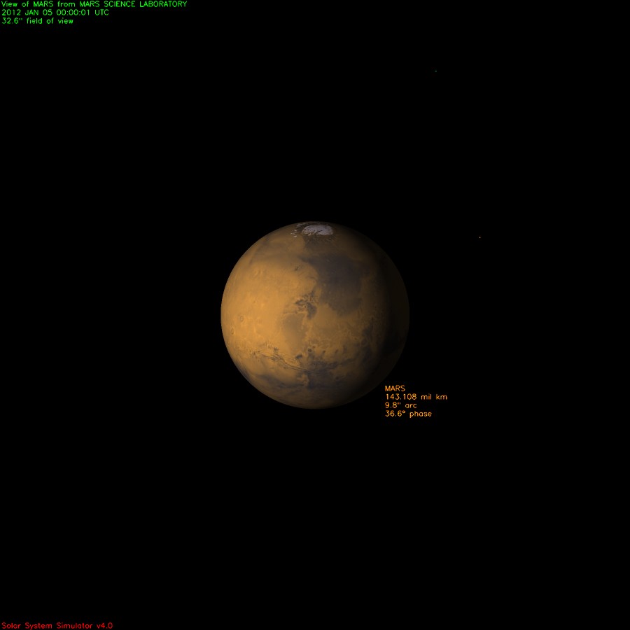 Focadas no seu destino, previsto para o dia 6 de Agosto de 2012, Marte é visto a 143 108 mil km.