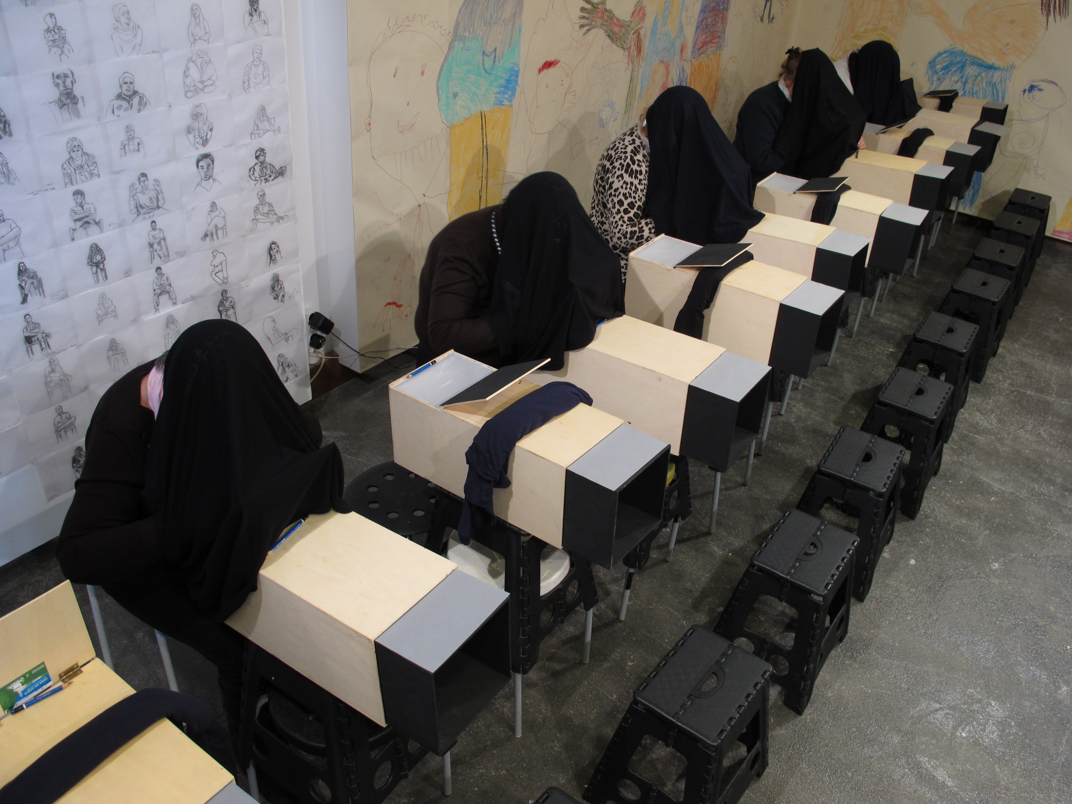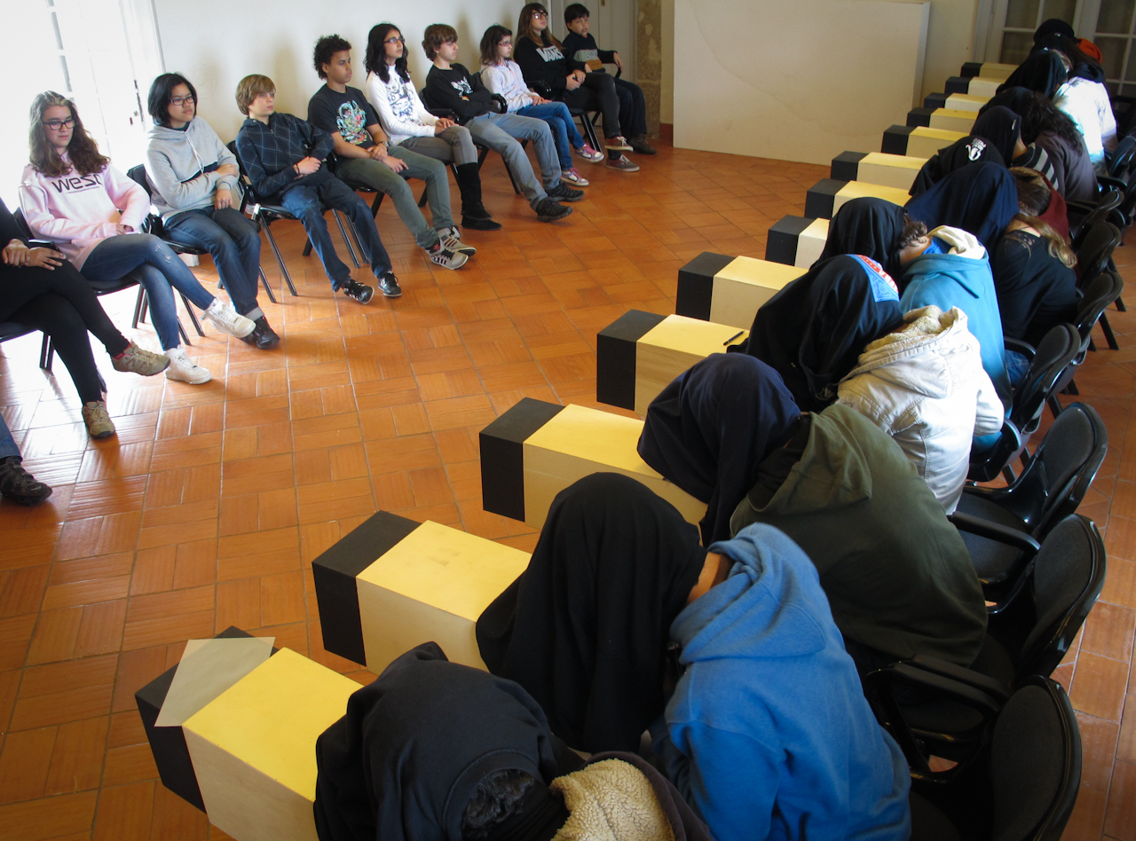 5- Jovens usam a Câmara de Desenhar. Uns posam enquanto os outros desenham (Fotografia Mário Rainha Campos).