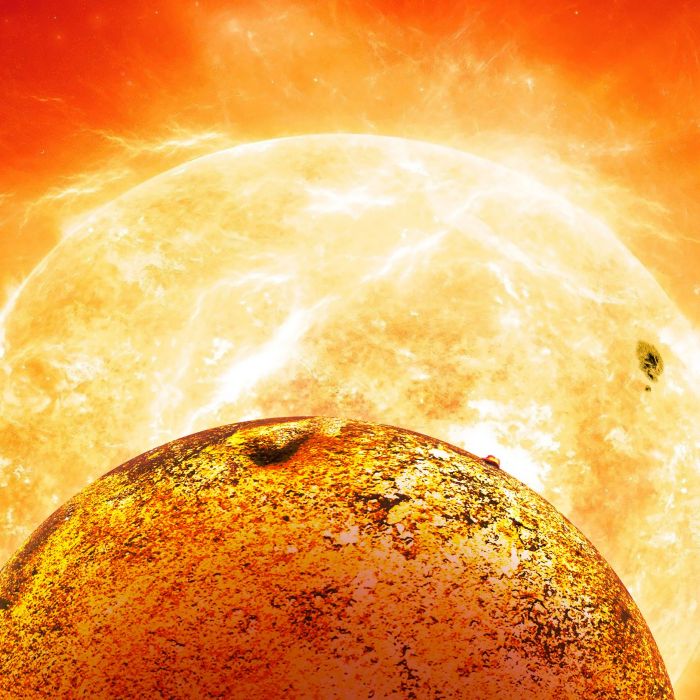 Fig1: Figura Artística da estrela Kepler-78, e do planeta Kepler-78b. Crédito: David Aguilar (CfA)