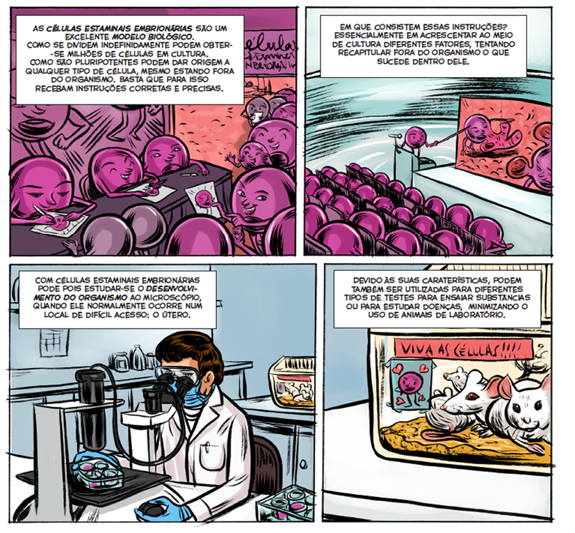 Nessa perspectiva, a utilização da banda desenhada (BD) pode ser muito útil. A BD implica a mistura de texto e desenho em sequências que contam uma história, ou transmitem informação. A vantagem de utilizar BD relaciona-se com a visualização imediata que oferece ao leitor, seguindo a máxima que “uma imagem vale mais que mil palavras” - por exemplo, representando o desenvolvimento de um organismo através de imagens consecutivas em diferentes idades. O desafio é escolher as imagens e palavras adequadas.