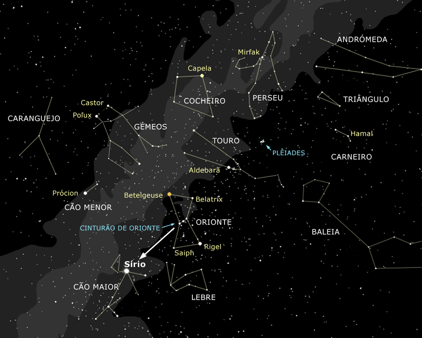 Identificar as estrelas mais brilhantes, pelos seus nomes.