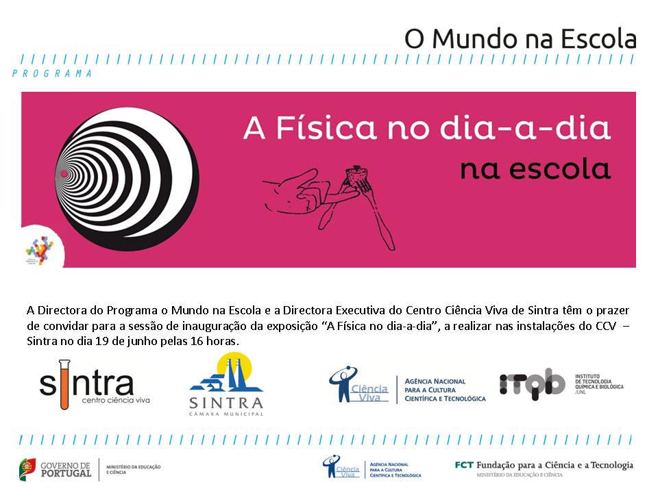 ”Através de objectos do quotidiano enquadrados em cada uma das divisões de uma casa (quarto, sala, escritório, cozinha e jardim) explicam-se os princípios da Física Clássica, pelas experiências idealizadas por Rómulo de Carvalho. Exposição baseada na obra de Rómulo de Carvalho “A Física no dia-a-dia” desenvolvida pelo Pavilhão do Conhecimento e adaptada pelo Mundo na Escola para itinerância pelo país, estará patente ao público de 19 de Junho até 3 de Novembro.