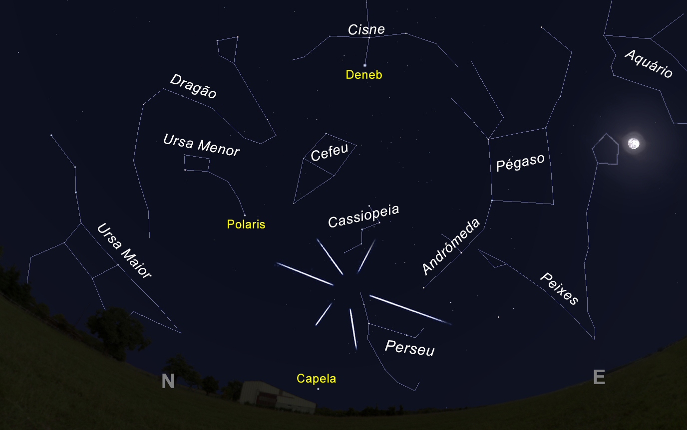 De qualquer maneira, quem arriscar certamente conseguirá ver alguns a cruzar o céu. O pico de atividade está previsto entre as 20:00 do dia 12 e as 9:00 do dia 13, com maior probabilidade de ocorrer próximo da meia-noite. O radiante das Perseidas (ou seja o ponto de onde parecem provir na abóbada celeste), aparecerá acima do horizonte a Nordeste.