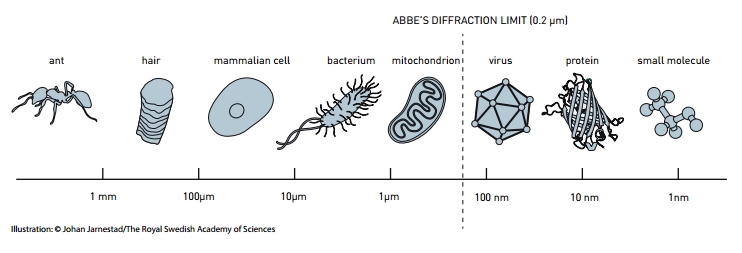 Durante a maior parte do século XX, a lei de Abbe fez os cientistas acreditarem que nunca conseguiriam ver coisas inferiores a 0,2 micrómetros mantendo as estruturas vivas (a microscopia electrónica permite essa resolução, mas exige que os espécimes a observar sejam submetidos a tratamentos que matam os tecidos vivos). Ou seja, não seria possível ver a actividade no interior de células vivas, nem a interacção em tempo real de proteínas com a membrana celular, por exemplo. Nem estudar em detalhe como os vírus infectam as células.