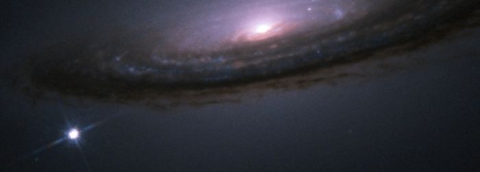 IMAGEM - A supernova do tipo Ia SN1994D, no canto inferior esquerdo da imagem. Como a supernovas explodem com a mesma dinâmica em qualquer ponto do Universo, podem ser usadas como velas padrão, isto é, medindo a sua luminosidade máxima, calcula-se a distância à supernova. Ao observar estas explosões, as duas equipas concluíram que o Universo está em expansão acelerada. Crédito: High-Z team, HST, NASA