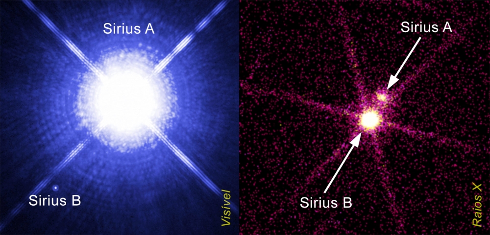 Mas apesar de a “A” ser muito mais brilhante que a “B” na banda do visível, em raios X os papéis invertem-se, com Sirius B a brilhar muito mais que a sua companheira maior.