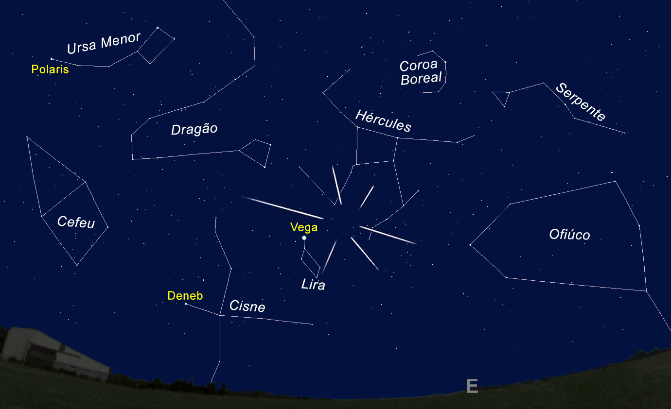 Mais fácil de observar será o máximo da “Chuva de Estrelas” das Líridas, que ocorre na noite de 22 para 23. O nome deve-se ao fato do radiante (ponto de onde parecem emanar os meteoros) desta “chuva” estar na constelação da Lira.