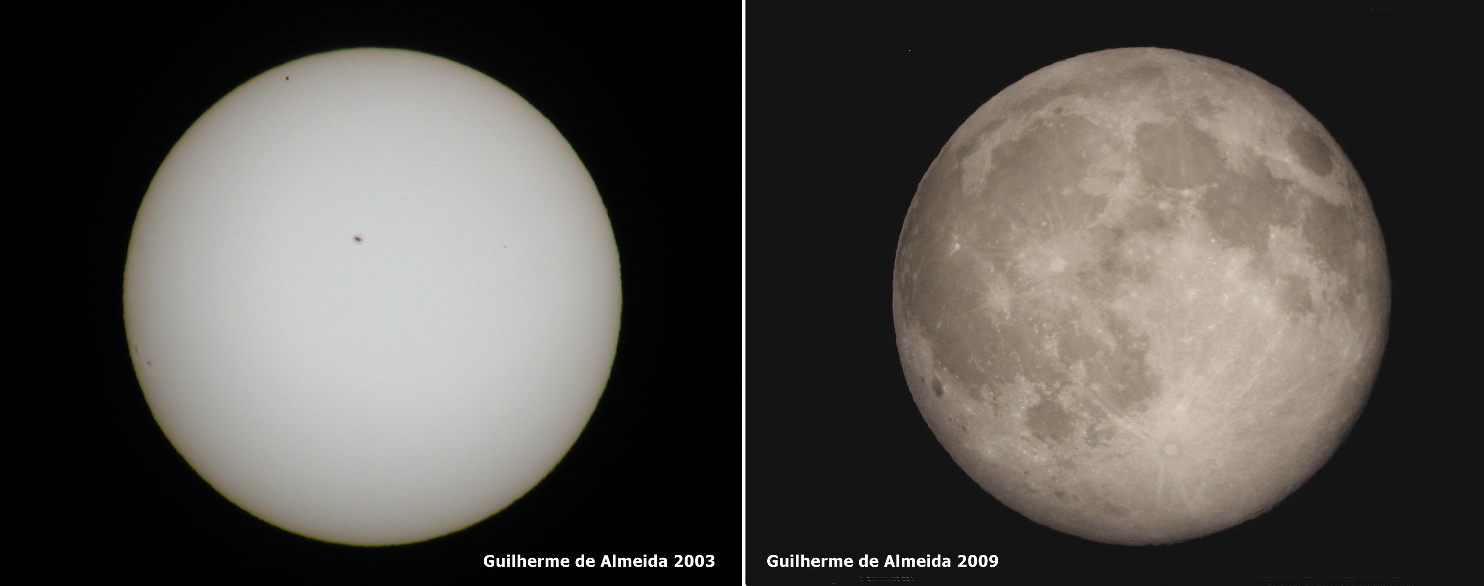 Desta coincidência espantosa resulta o facto de ambos os astros, vistos da Terra apresentarem o mesmo tamanho aparente: cerca de 0,5º. É essa coincidência que possibilita a beleza dos eclipses totais do Sol, coberto “à justa” pela Lua. Mas estes valores variam ligeiramente, no caso do Sol e no caso da Lua, como o leitor verá seguidamente.