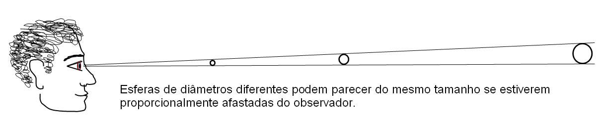 É possível fazer uma experiência simples e reveladora. Se olharmos para uma pequena bola de 4 cm de diâmetro, a um metro do olho, e para outra bola de 20 cm de diâmetro, colocada 5 metros do olho, veremos que as duas mostram o mesmo diâmetro aparente: parecem do mesmo tamanho. Colocando a bola pequena alinhada com a grande, mantendo as distâncias referidas, veremos que a bola pequena cobre exactamente a bola grande.