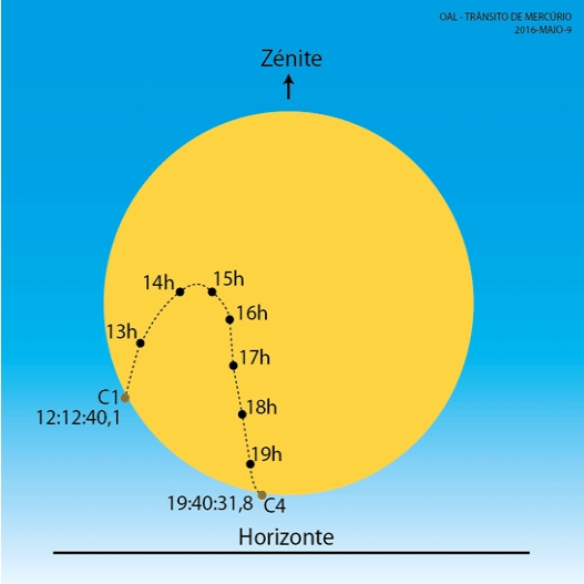 Em Portugal, se o Sol estiver descoberto, a observação do trânsito terá início 12 horas e 12 minutos (hora continental) e irá durar até às 19 horas e 42 minutos, com o máximo pelas 15 horas e 56 minutos. Ao longo da tarde várias instituições nacionais levarão a cabo a observação do trânsito, recorrendo a instrumentos devidamente equipados. É o caso do Observatório Astronómico da Universidade de Coimbra, o Planetário do Porto – Centro Ciência Viva e o Planetário Calouste Gulbenkian – Centro Ciência Viva, organizando-se atividades abertas ao público que vão da observação do evento com telescópios, até conversas com astrónomos destas instituições.