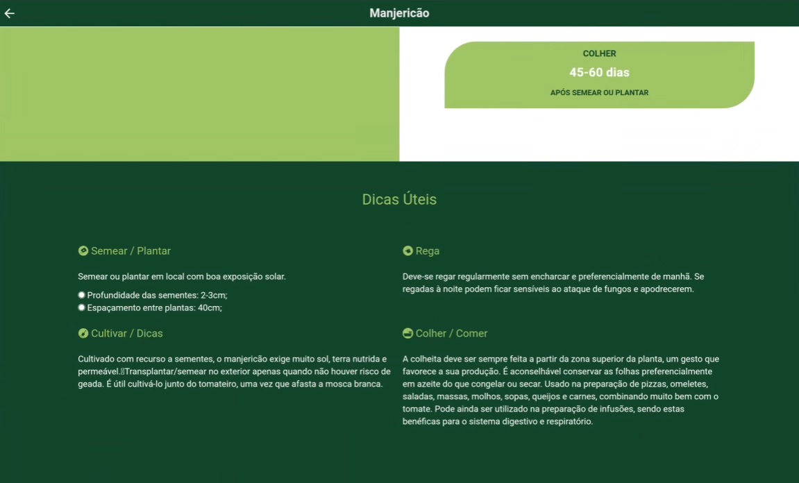 A app contém ainda dicas para quem quiser preparar biofertilizantes ou conhecer métodos simples para controlo de pragas. A médio prazo, o objetivo é abarcar novas variedades e funcionalidades que promovam a interação com o utilizador.