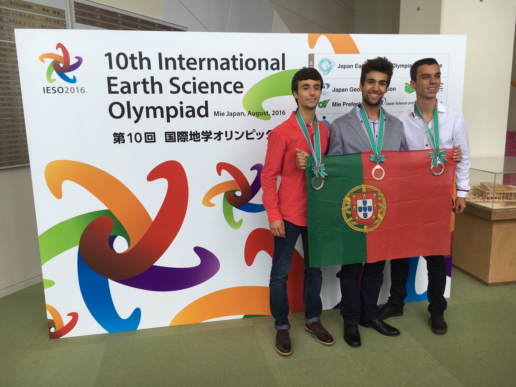Entre 20 e 27 de Agosto realizaram-se em Mie no Japão as 10as Olimpíadas Internacionais de Ciências da Terra (International Earth Sciences Olympiads - IESO 2016; http://www. http://ieso2016.jp), na qual estiveram presentes delegações de 26 países.