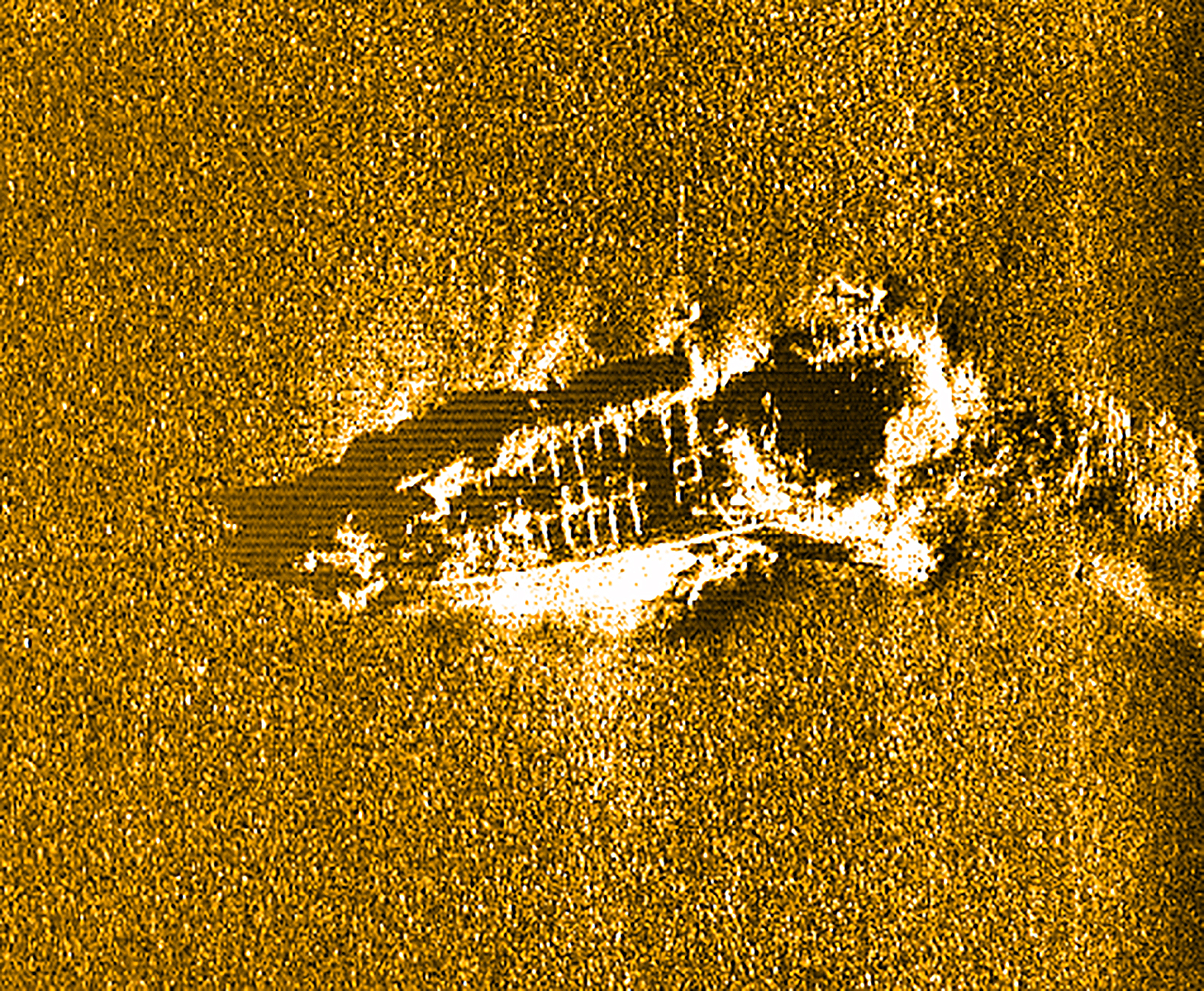 Imagem em anexo: Estado actual do destroço Roberto Ivens - sonar de varrimento lateral resultante da prospecção geofísica realizada em conjunto com a Marinha Portuguesa.